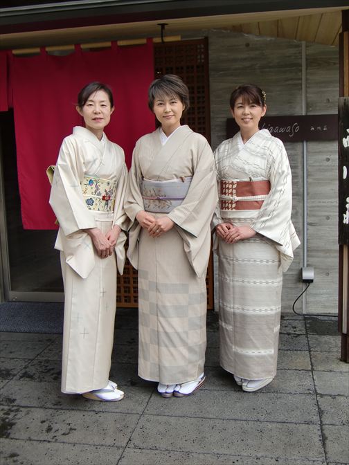 ランチ会 2013 03 ラジオ「きものを楽しむ生活」でお世話になっている森田恵子さんと番組ディレクターの河津早苗さんと、皆きものでランチ会を催しました。 隔週水曜日 am 8:20 からの放送です。ぜひお聞き下さい。