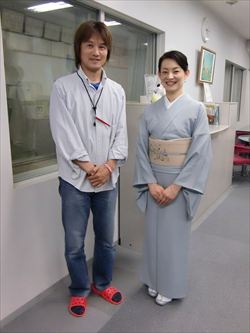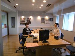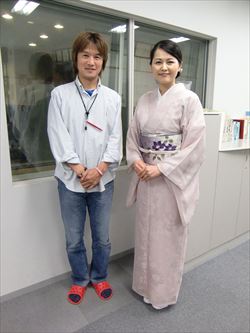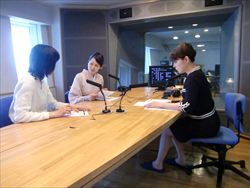 FM岡山 『Fresh Morning OKAYAMA』の番組内にて森田恵子さんと学院長の対談コーナー「きものを楽しむ生活」の出演時の様子です。