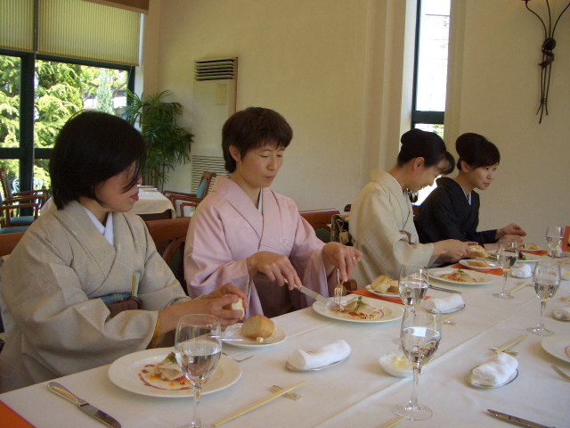 テーブルマナー講習会 2007 05.21 2007.05.21 授業で「ボンボワ」さんにてテーブルマナー講習会を行ないました。テーブルマナーを勉強しつつおいしいお食事を頂きました。 参加者みんなで記念撮影