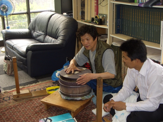 2007.06.13 産地研修で京都に行ってきました。藤井 浩先生の工房見学ののち、昨年と同じく祇園「京柿」さんにておいしい昼食を頂き、二代目清二郎先生の工房を見学、詩仙堂を散策とたいへん充実した1日でした。