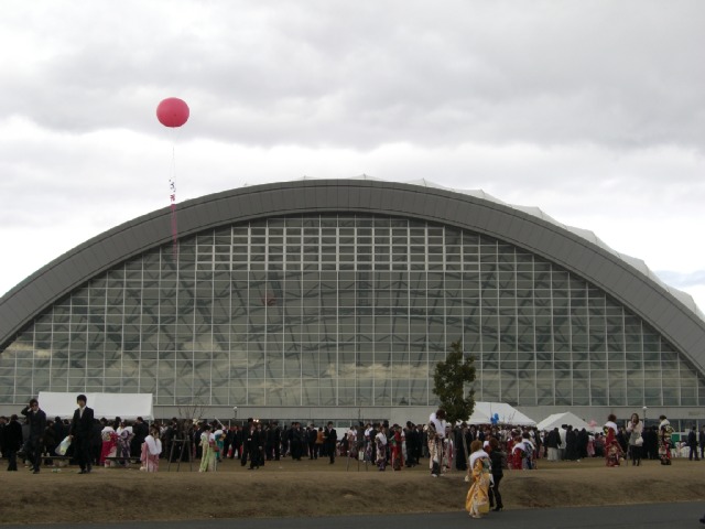 岡山市成人式 2008 01.13 2008.01.13 ジョイフル恵利 岡山ザ マグリット店さんにて、岡山市の成人式に出席された84名のお嬢様方のお支度を私共のスタッフでお手伝いさせていただきました。 成人式会場の岡山ドームと 新成人の皆さん(とても小さいのですが・・・) お支度をお手伝いさせていただいた皆様