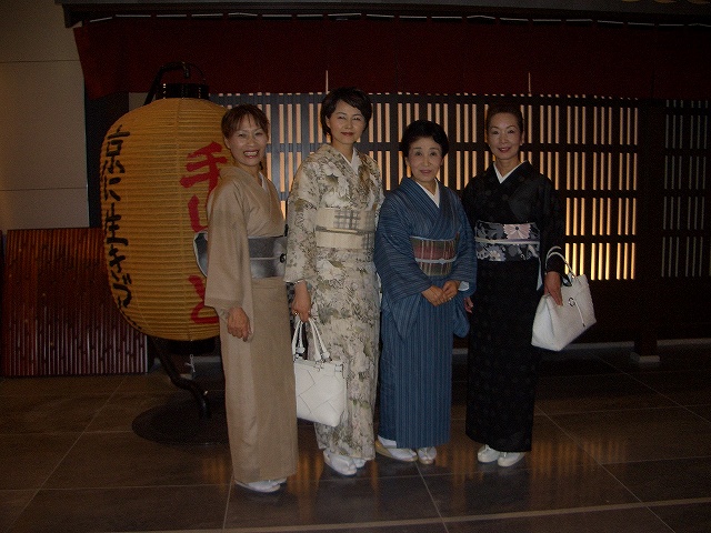 日本和装師会研修会 2008 07.05 ~ 06 2008.07.05(土) ・06日(日) 京都市勧業館 みやこめっせにて行なわれた 『第39回 日本和装師会研修会』に行ってきました 日本和装師会会長 市田ひろみ会長を囲んで 日本和装師会理事 雨森先生と 雨森先生はこの研修会の後、 洞爺湖サミット時に催された 首脳婦人のおもてなしの為、 「十二単の着付け」の披露に向かわれました。 研修会スケジュール 7月5日(土) 10:00~10:15 表彰式 10:15~12:00 私の光源氏 市田ひろみ会長 13:00~15:00 漫画文化の歴史と和装表現 京都精華大学名誉教授 橋本 初子先生 15:00~16:00 おたのしみ抽選会 18:00~20:00 食事会 (接方来 三条店) 7月6日(日) 10:00~12:00 歴史の中の美男美女 評論家 井上 章一先生 13:00~15:00 女の選択 文筆家 阿川 佐和子先生 初日の食事会で会場の 接方来 三条店さん