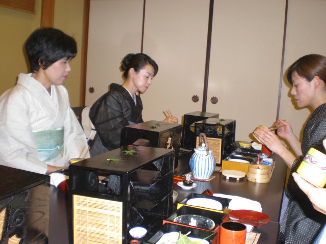 OB会-岡山市田町 一扇 2008 07.09 2008.07.09 (水) 岡山市田町の日本料理 一扇さんにて年に一度催しているOB会を行ないました。おいしいお料理のおかげで自然と話も盛り上がり、楽しい時間を過ごす事が出来ました。 この日は吉野弁当をいただきました。 少しずついろいろな味を楽しめ また、お重を使った配膳も素敵でした。