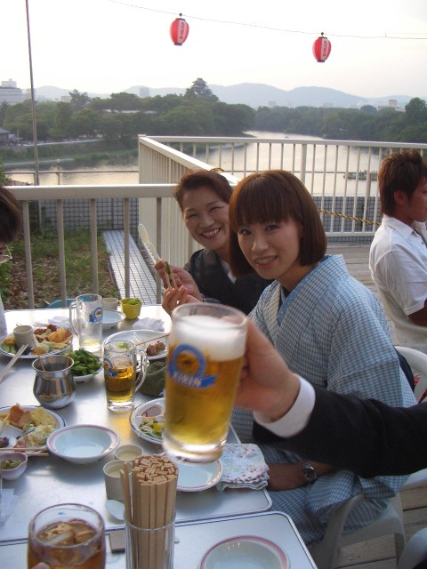 花火大会が始まるまで ビールをいただきながらしばし・・・ |