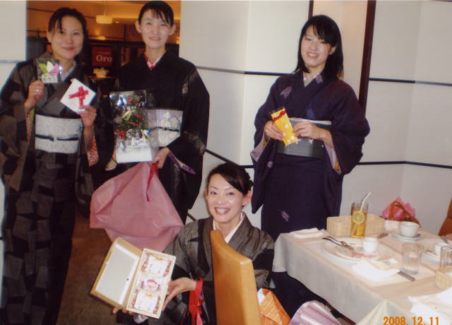 クリスマス会 2008 12.11 2008.12.11(木)リストランテ Oro.さん(岡山県岡山市駅前町1-1-1岡山成通ビル5F)にてクリスマス会を行ないました。おいしいお食事を頂いた後、各々思い思いに用意しておいたプレゼントを「ジングルベル♪」を歌いながらプレゼント交換!童心に帰ったようでとても楽しかったです。