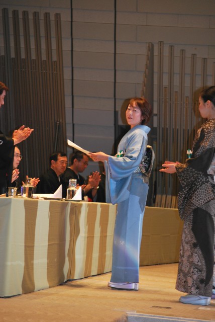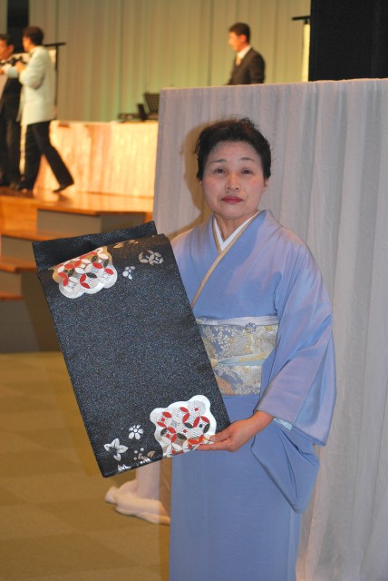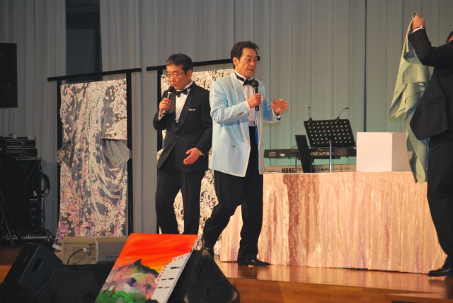 | 清水あきらさんのショーや抽選会が催され、抽選会ではみごと山本先生に帯が当たりました。 | |