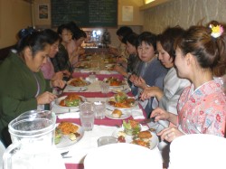 2009.12.10 (木) クリスマス会で「サンタキャンドル作り」をしました。皆さん一生懸命に思い思いのかわいいキャンドルを作られていました。キャンドル作りの後には「TABERUNA」さんでランチ会を行い、皆さんで楽しい時間を過ごしました。