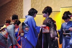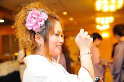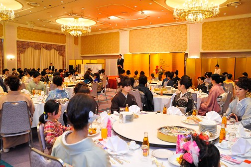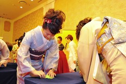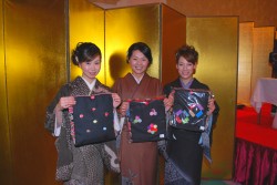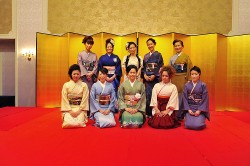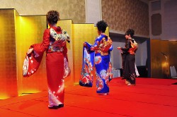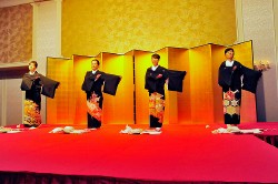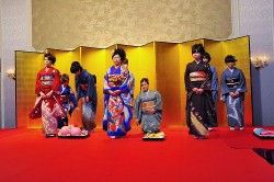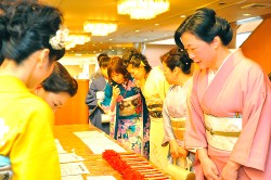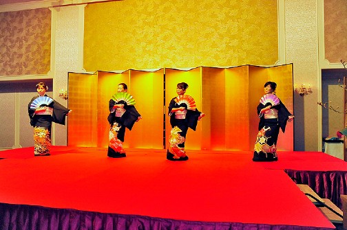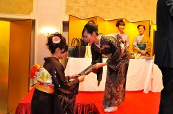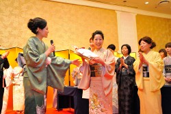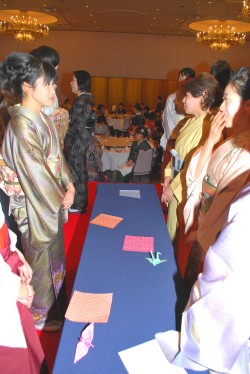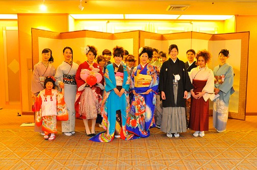 1. 主催者挨拶 2 .乾杯 3. 着付舞 曲目:一青窈 「ハナミズキ」 4. きものショー ~振袖アレンジと晴れの日の装い~ 5. ゲーム 折り鶴 早折り競争 6. 写真撮影 7. お楽しみ抽選会 |