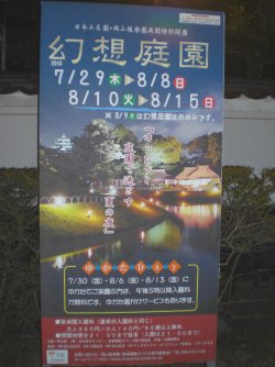 2010.08.07(土) 岡山プラザホテルで食事会の後、昨年に引き続き、岡山後楽園で開催された「幻想庭園」に行ってきました。お子様連れで・ご家族連れでと、たいへん多くの方々にご参加頂きましてありがとうございました。皆さんでにぎやかに楽しく美味しい食事をいただき、ライトアップされた後楽園では文字通り幻想的な美しさに見惚れ・・・とても良い時間を過ごすことができました。