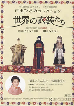 2010.09.23(木)神戸ファッション美術館で開催中の「市田ひろみコレクション・世界の衣装たち」にて、展示会と、合わせてこの日に行なわれた市田ひろみ先生の講演会に行ってきました。