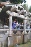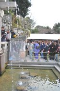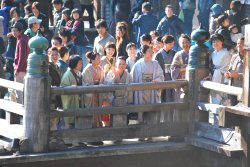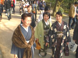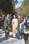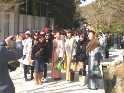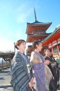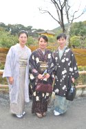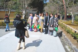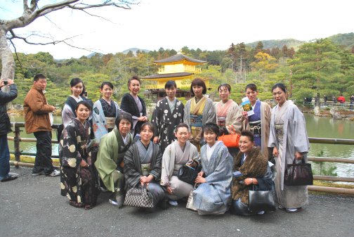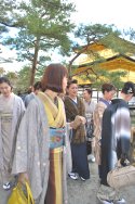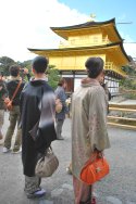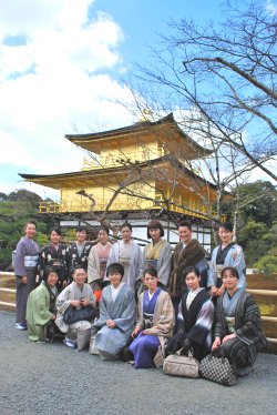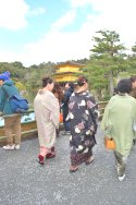 お馴染み『金閣寺』での散策です。が、 外国人観光客の皆様が着物姿を たいへん喜んで下さり・・・皆さんが 代わる代わるに30分くらい撮影会と なってしまいました。 |