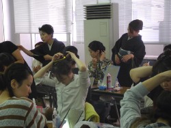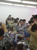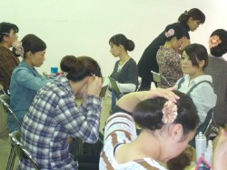 2011.10.27(木) ヘアセット講習会&ランチ会を行ないました。ヘアセット講習会では皆さん自分でヘアセットを出来るように!と真剣な眼差しで講習を受けられていました。講習後は出来上がったヘアに着物を着てランチに出掛けました。