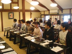 2011.11.11(金)倉敷美観地区の料理旅館「鶴形」さんにて和食のマナー講習会を行いました。皆さん美味しいお料理を頂きつつ、熱心に学ばれてました。終了後には木々が色づき一段と美しい秋の美観地区を散策してきました。