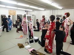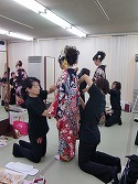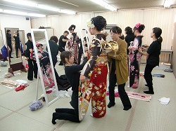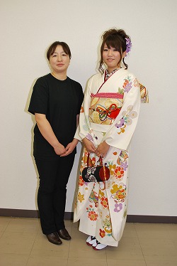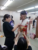 2012.01.08(日) 昨年に引き続き「ジョイフル恵利」さんにて、岡山市の成人式に出席されたお嬢様方のお支度を私共のスタッフでお手伝いさせていただきました。