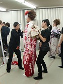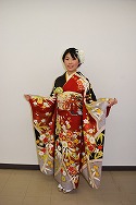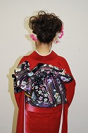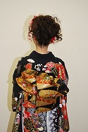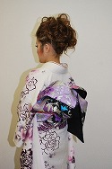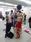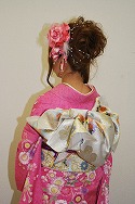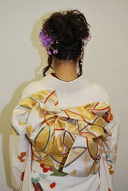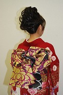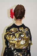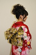 | スタッフの娘さんも今年成人式を迎えられました。ご自分の娘さんのお支度をお手伝いされる・・・素敵ですね。 ちなみに彼女の帯は先日、なでしこジャパンの澤 穂希選手がバロンドールの授賞式の際に締められていたものと同じなんですよ。 |