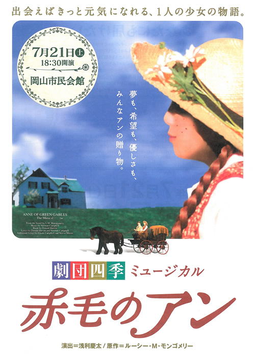 7月21日(土) 岡山市民会館で公演中の舞台、劇団四季ミュージカル「赤毛のアン」を観に行ってきました。