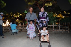 2012.07.28(土) 『四季彩』さんにて食事会の後、昨年に引き続き、岡山後楽園で開催された「幻想庭園」に行ってきました。お子様連れで・ご家族連れでと、たいへん多くの方々にご参加頂きましてありがとうございました。皆さんでにぎやかに楽しく美味しい食事をいただき、ライトアップされた後楽園では文字通り幻想的な美しさに見惚れ・・・とても良い時間を過ごすことができました。