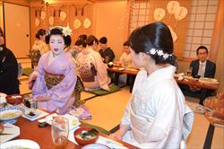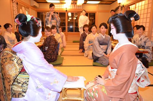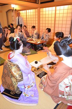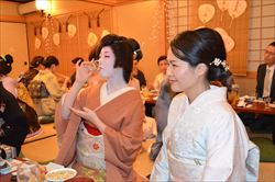 八坂通り 「燕楽」さんにて夕食 舞妓さん芸子さんと一緒に楽しい時間をすごしました。 |