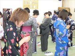 6月13日(木)『半巾帯変わり結び講習会』を行い、皆さん熱心に受講されていました。