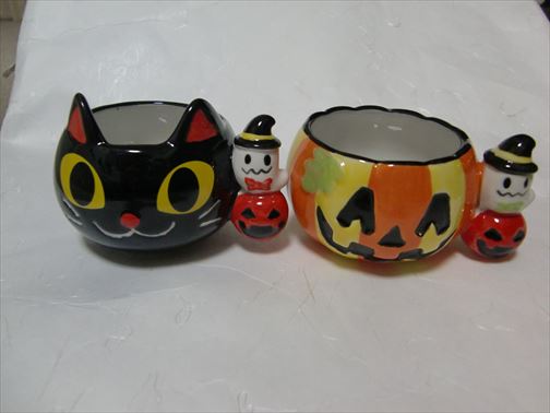 ティータイムに頂いたデザートの器です。ハロウィンにちなんだもので、 とても可愛いかったので写真を。肝心のティータイムの写真は…あまりに楽しかったものでついつい撮り忘れてしまいました。残念。 |