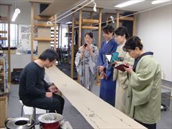 11月10日(日) 京都の染色作家 津室 朱光先生の工房へ見学に行ってきました。見学後には 「京柿」さんにておいしいランチを頂き、祇園花見小路を散策してきました。