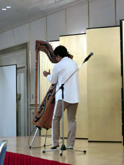 28日の食事会の様子です。 インディアンハープの演奏は 志賀昭裕さん |