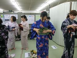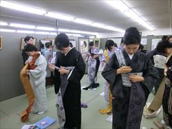 7月17日(木)『半巾帯変わり結び講習会』を行い、皆さん熱心に受講されていました。