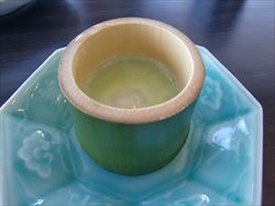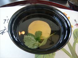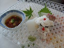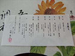 献立 前 菜・前菜盛り合わせ 椀盛り・うなぎ玉止〆 うす葛仕立て 露生姜 造 里・造り盛り合わせ あしらい一色 山葵 焼 物・賀茂茄子田楽チーズ焼 ふり柚子 かもじ葱 酢の物・穴子白焼 きゅうり漬け とまと 打ち茗荷 揚げ物・無花果揚げ出し 夏鴨治部煮 冷し鉢・夏野菜もろこしゼリー 蛸柔煮 南京 白だつ 枝豆 海老 おくら 止・小芋と鮎ご飯 又は よもぎそうめん 又は いなり寿司 デザート・季節に熟すもの 神戸たむら 料理長 山﨑英人さん |