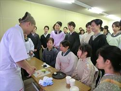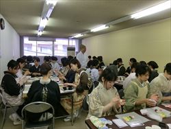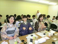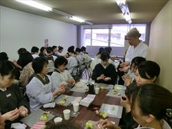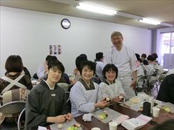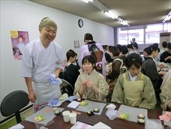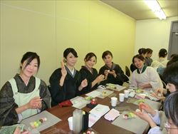 2014.10.31(金) 和菓子教室を行ないました。普段口にする事は有ってもなかなか自分で作る機会は無い「和菓子」、皆さん先生に教えていただきながら真剣に、楽しく和菓子を作られていました。