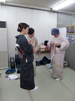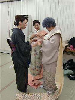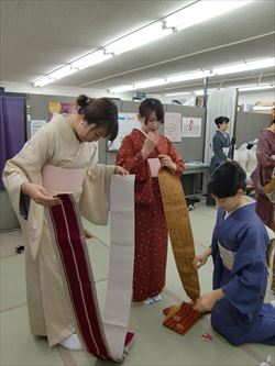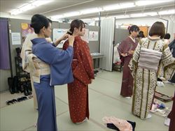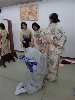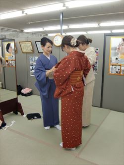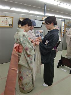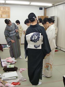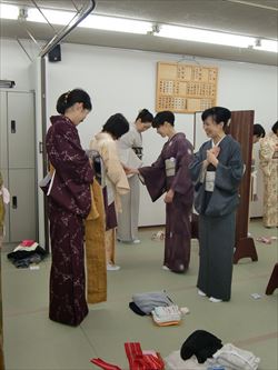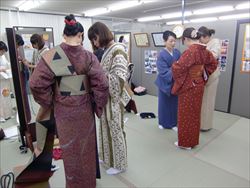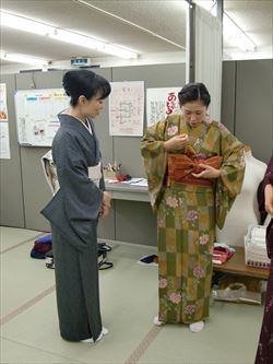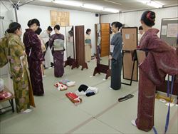11月09日(日) 11月15日は『きものの日』なのですが、それにちなんで、全国一斉に受講料無料の『きもの着付け教室』が開催されました。こちらはその時の様子です。皆さんたいへん熱心に受講されていました。