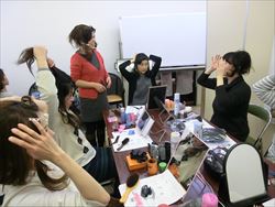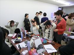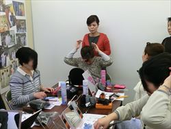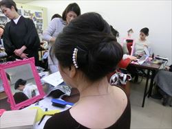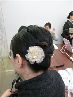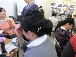 2015.02.27(金) ヘアセット講習会とお茶会を行ないました。ヘアセット講習会では皆さん自分でヘアセットを出来るように!と真剣な眼差しで講習を受けられていました。