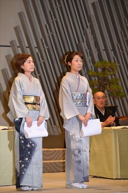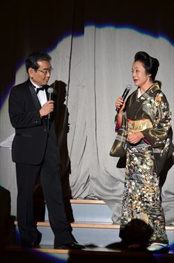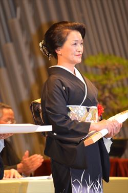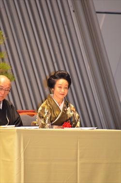 協会顧問で女優の二宮さよ子さん 1969年に文学座付属演劇研究所に入所。杉村春子の部屋子としてお世話をしながら女優としての心得を学ぶ。 1973年に座員に昇格。その後、映画「吉原炎上」などの演技で演技派として広く認知された。 1994年に24年間在籍した文学座を退団した。日本舞踊、三味線、小唄などをこなし、着物を着こなせる女優の一人にも数えられる。 |