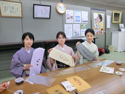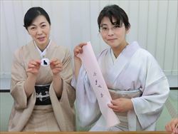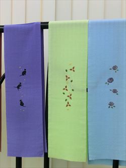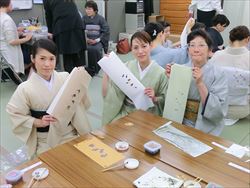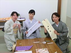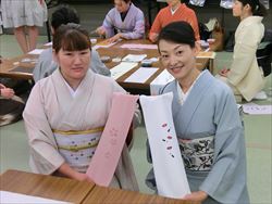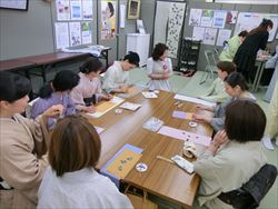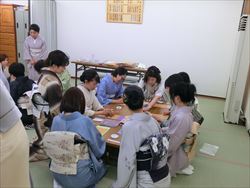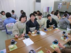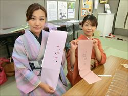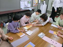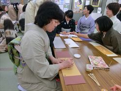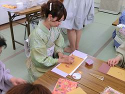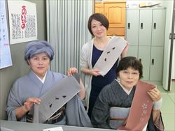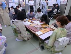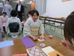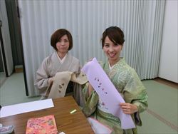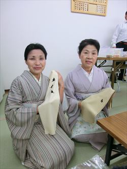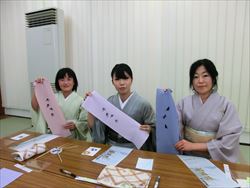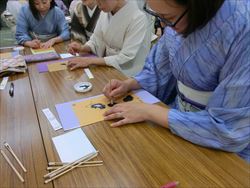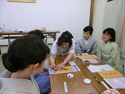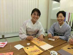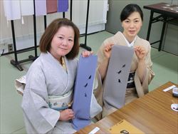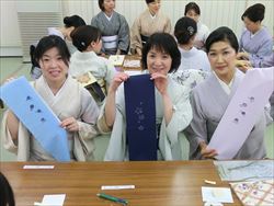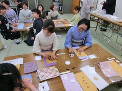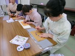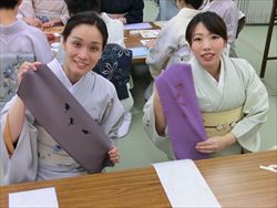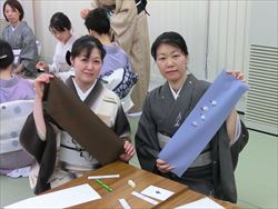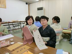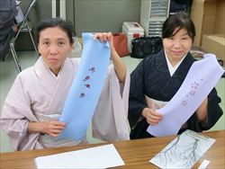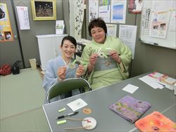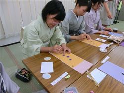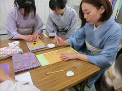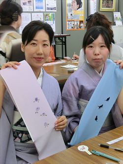 2015.06.04(木)染織作家の渡辺空海子先生をお迎えして、半衿と帯留の絵付体験を行いました。皆さん楽しみながらも熱心に絵付けをされていました。