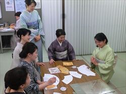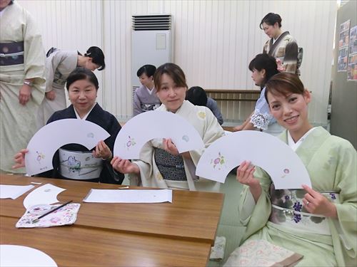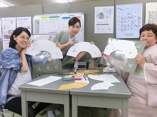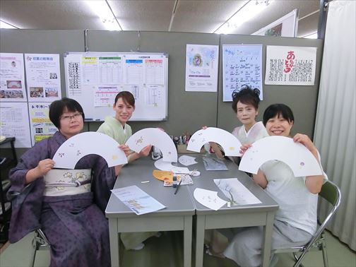 2016.06.08(水)染織作家の渡辺空海子先生をお迎えして、扇子の絵付体験を行いました。皆さん楽しみながらも熱心に絵付けをされていました。