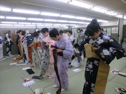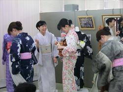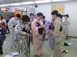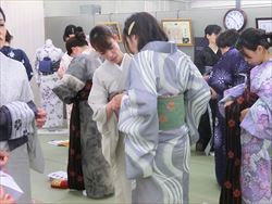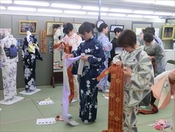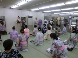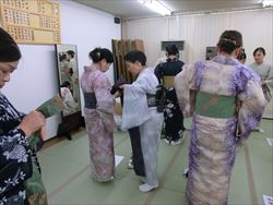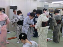 半巾帯変わり結び講習会 2016 07.14 7月14日(木)『半巾帯変わり結び講習会』を行い、皆さん熱心に受講されていました。 参加された皆さん この日の見本 講習の様子 参加された生徒さんの感想はこちら