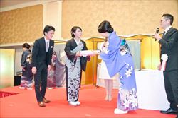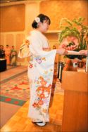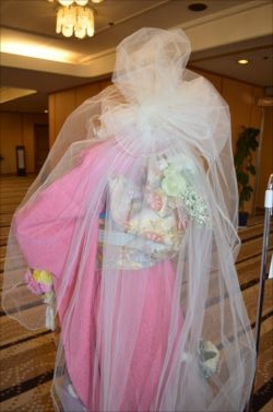 | 「二次会の花嫁」 思い出の成人式の衣装(ミニドレス・振袖)を 結婚式のパーティでも着られるようアレンジしてみました。 ボールフラワーは手作りです。 |