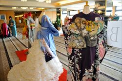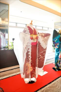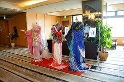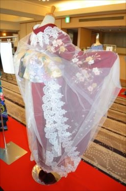 | 「夢見る乙女♡」 振り袖姿に花嫁の1枚の長~いヴェールを着物の羽織を イメージしてまといました。 |
