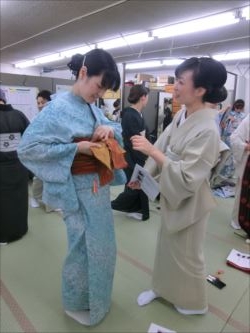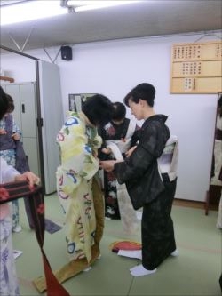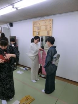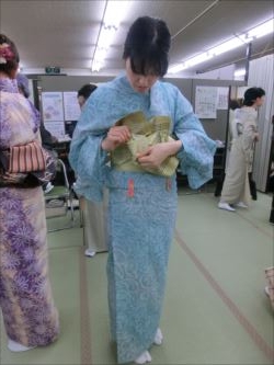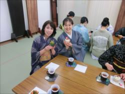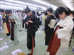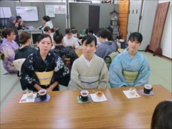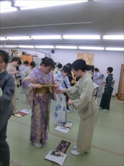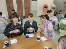 半巾帯変わり結び講習会 2017 07.13 7月13日(木)『半巾帯変わり結び講習会』を行い、皆さん熱心に受講されていました。 参加された皆さん この日のスイーツ達… 参加された生徒さんの感想はこちら