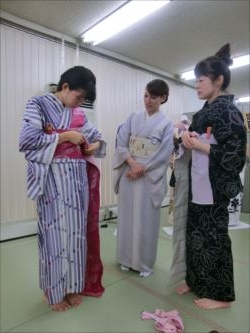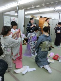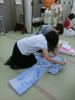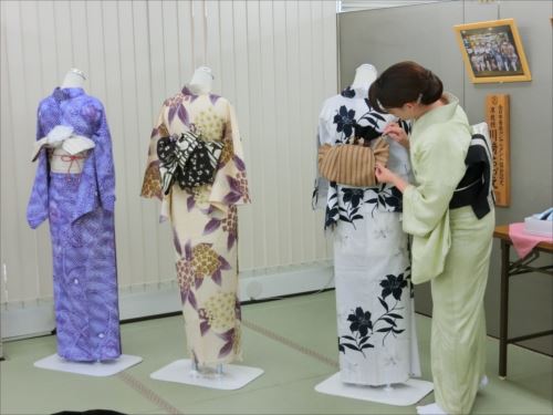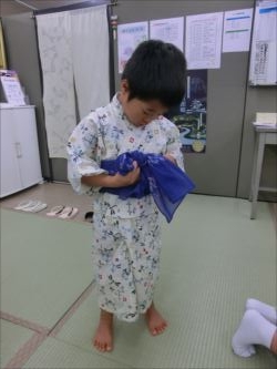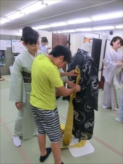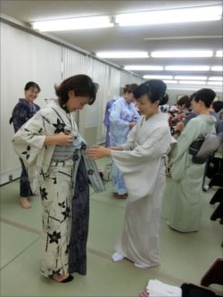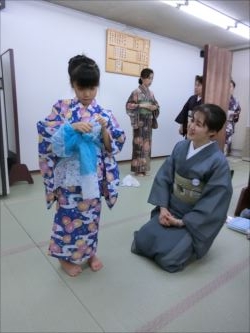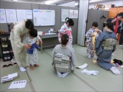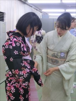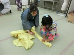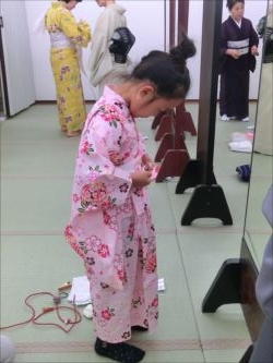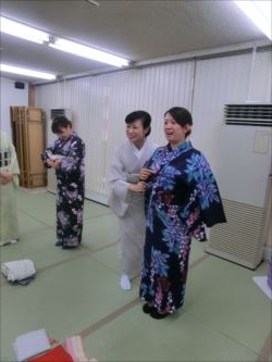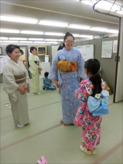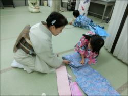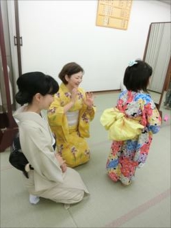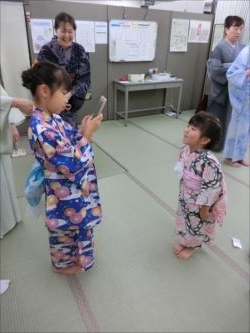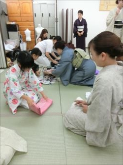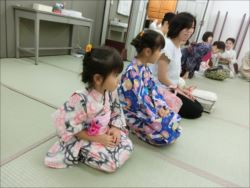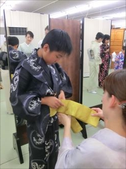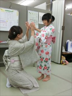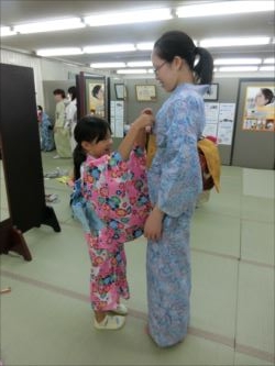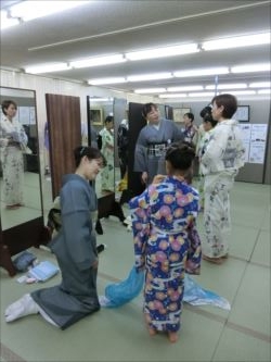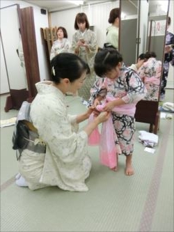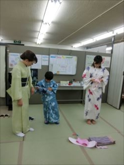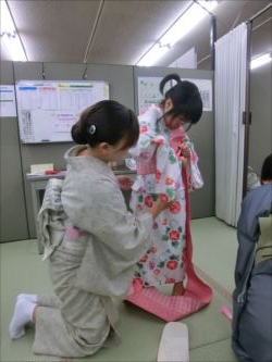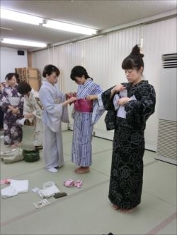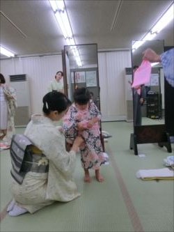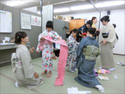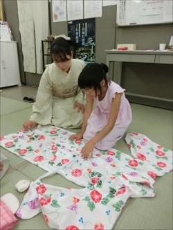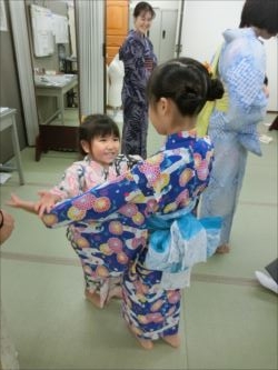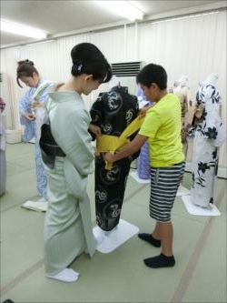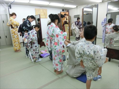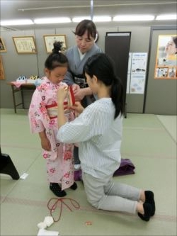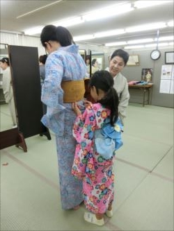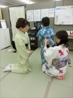 ゆかた着付教室 2017 07.29~30 7月29日(土)・30日(日)の2日間に渡って『ゆかた着付教室』を行いました。皆さん熱心に受講されていました。 ゆかた着付教室の様子 見本 子供さん達も自分で頑張りました!! 参加された生徒さんの感想はこちら