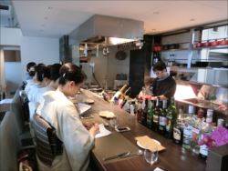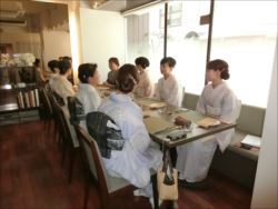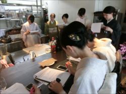 2017.08.01(火)講師お楽しみ会として学院の近くの「croissance(クロワサンス)」さんにて料理教室を催しました。シェフがデモンストレーションをされて、出来たお料理をおいしく頂くという形で教室をされているクロワサンスさん、この日は特別に私達の為だけに別日でお料理教室を催して頂きました。