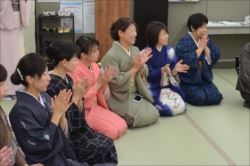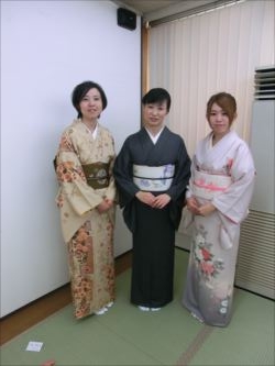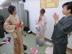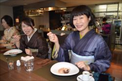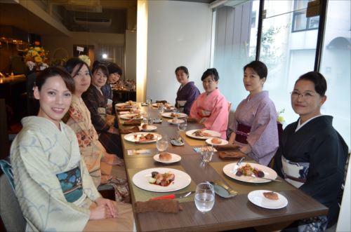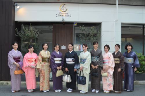 11月05日(日) 11月15日は『きものの日』なのですが、それにちなんで、全国一斉に受講料無料の『きもの着付け教室』が開催されました。こちらはその時の様子です。皆さんたいへん熱心に受講されていました。着付教室の後は学院の近くの「croissance(クロワサンス)」さんにてランチ会を催しました。