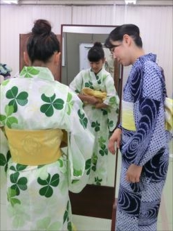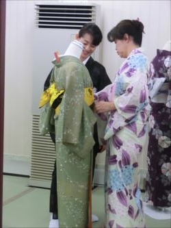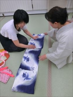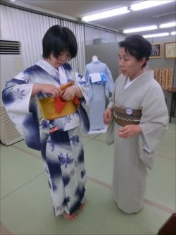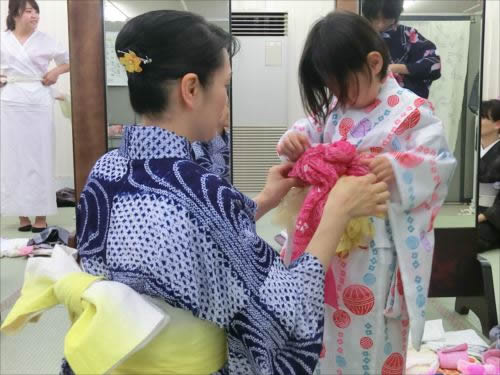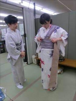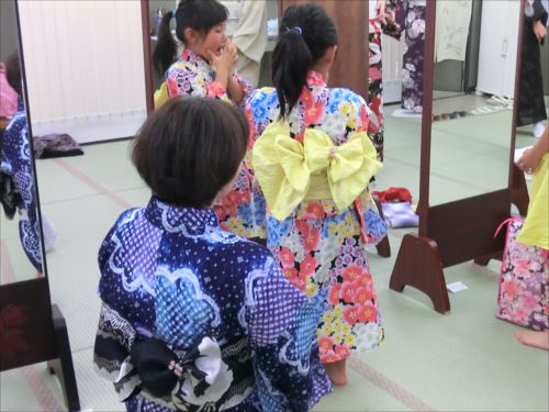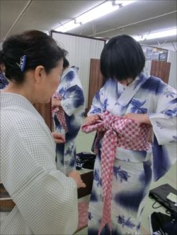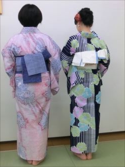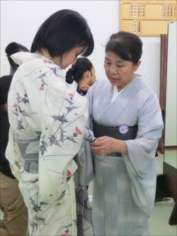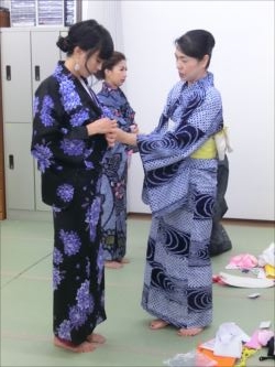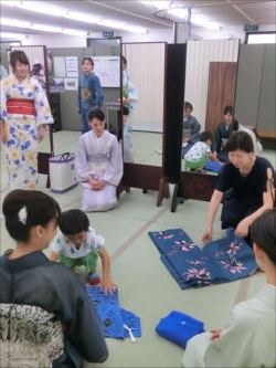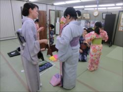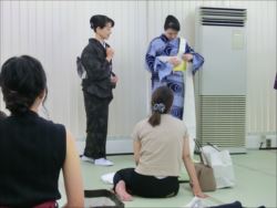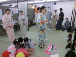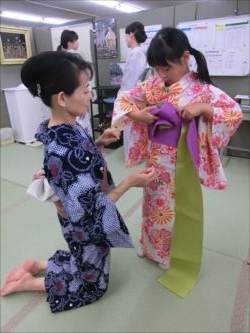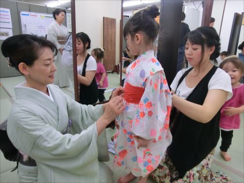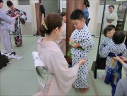 ゆかた着付教室 2018 07.27~28 7月27日(金)・28日(土)の2日間に渡って『ゆかた着付教室』を行いました。皆さん熱心に受講されていました。 ゆかた着付教室の様子 見本 子供さん達も自分で頑張りました!! 参加された生徒さんの感想はこちら