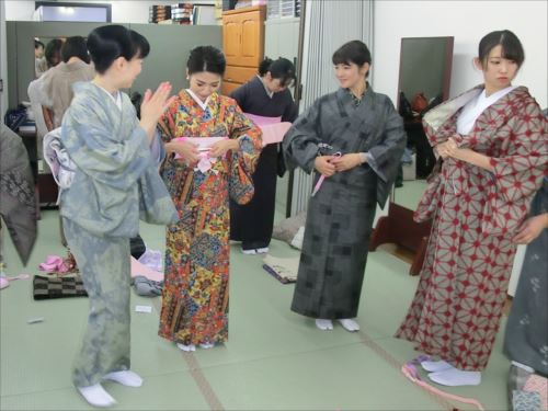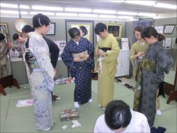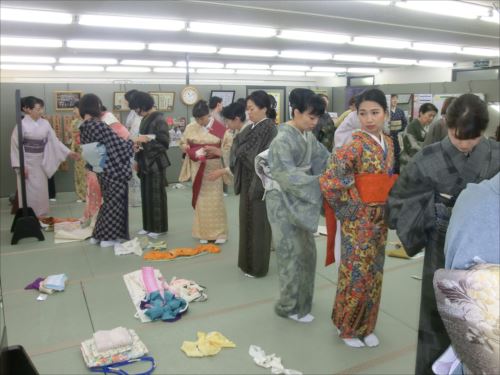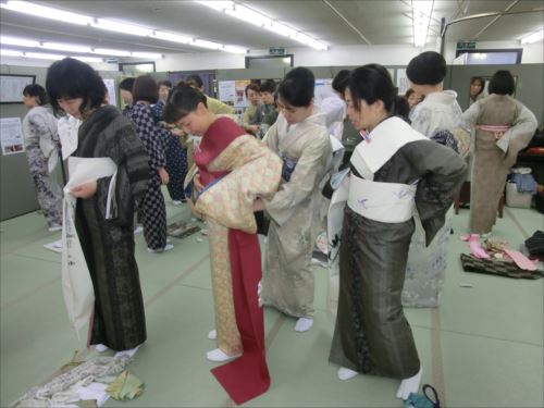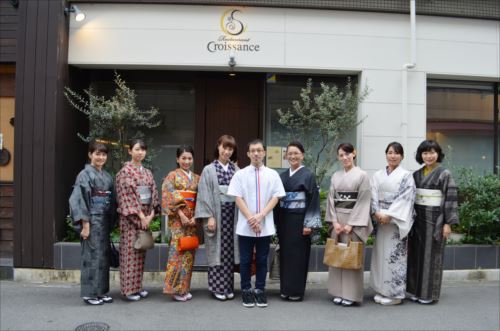 11月18日(日) 11月15日は『きものの日』なのですが、それにちなんで、全国一斉に受講料無料の『きもの着付け教室』が開催されました。こちらはその時の様子です。皆さんたいへん熱心に受講されていました。着付教室の後は学院の近くの「croissance(クロワサンス)」さんにてランチ会を催しました。