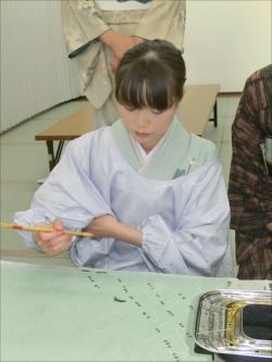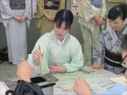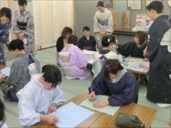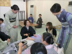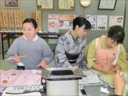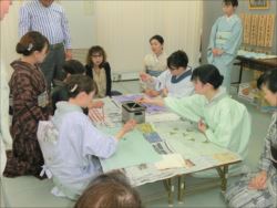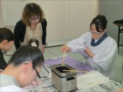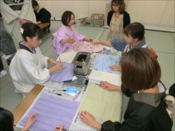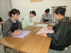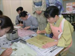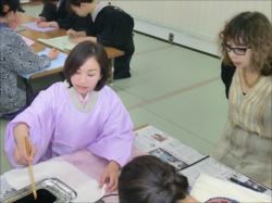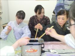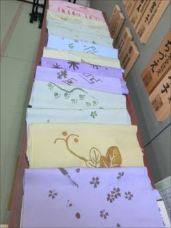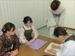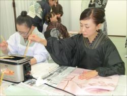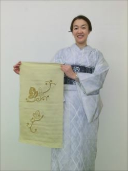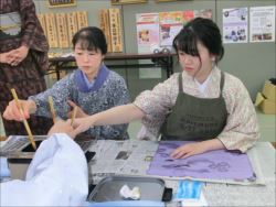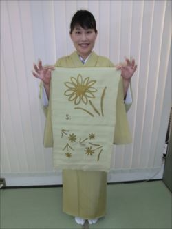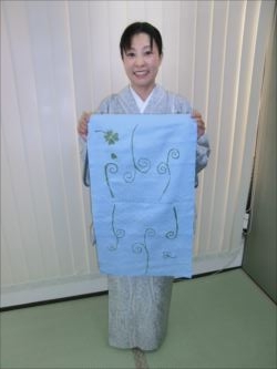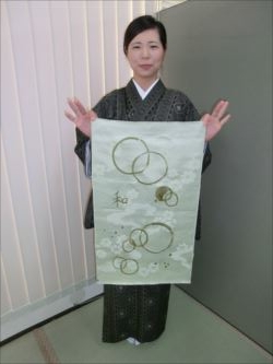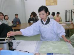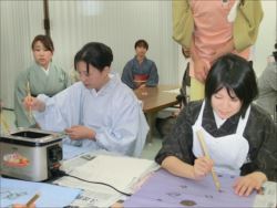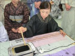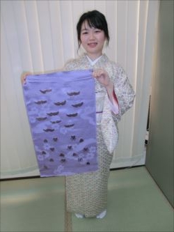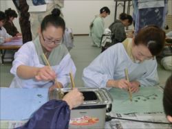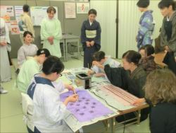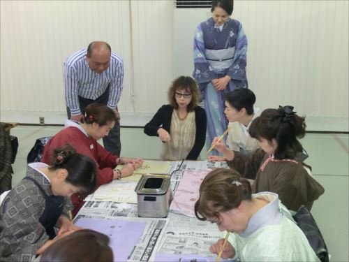 ろうけつ染め体験教室 2018 11.08 11月08日(木)京都の染織工芸作家「奥村右子」先生を講師にお迎えして、ろうけつ染め体験を催しました。 奥村右子先生と一緒に ろうけつ染めの染織工芸作家 奥村 右子先生 体験教室の様子 作 品 体験後のティータイム 参加された生徒さんの感想はこちら