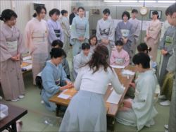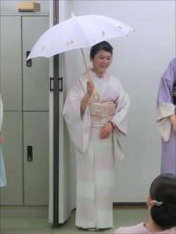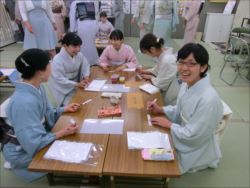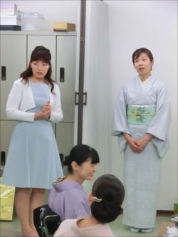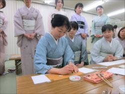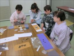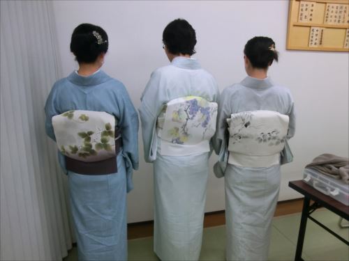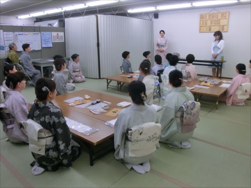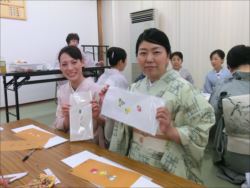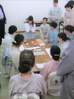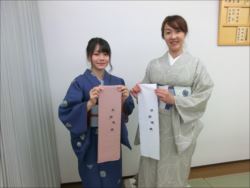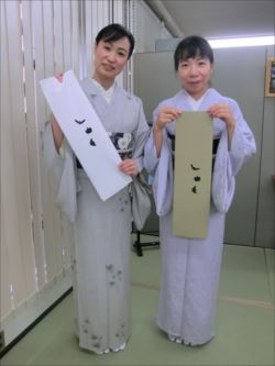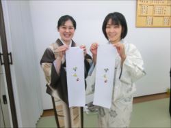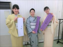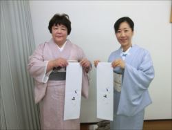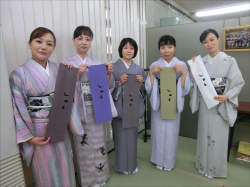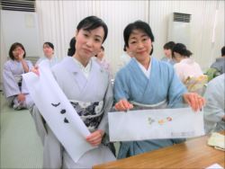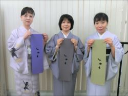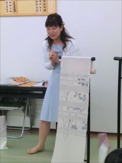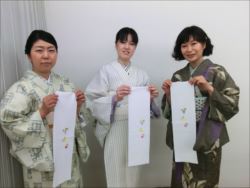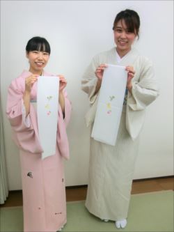 2019.06.12(水)染織作家の渡辺空海子先生をお迎えして、半衿の絵付け体験を行いました。皆さん楽しみながらも熱心に絵付けをされていました。