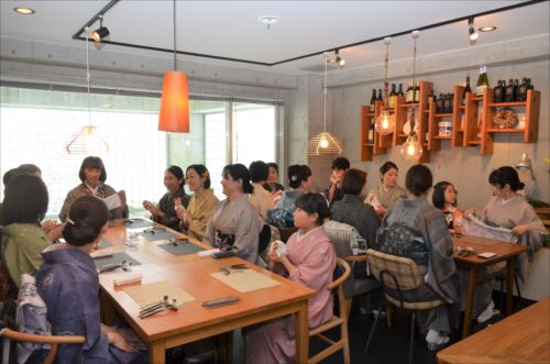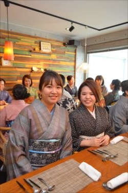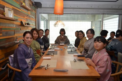 11月17日(日) 11月15日は『きものの日』なのですが、それにちなんで、全国一斉に受講料無料の『きもの着付け教室』が開催されました。こちらはその時の様子です。皆さんたいへん熱心に受講されていました。着付教室の後は学院の近くの「オステリア ラ リチェッタ」さんにてランチ会を催しました。