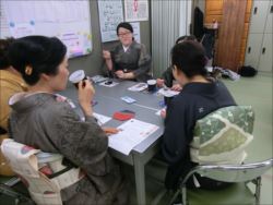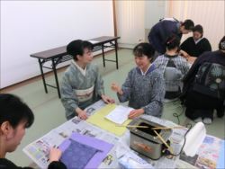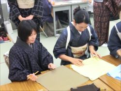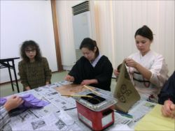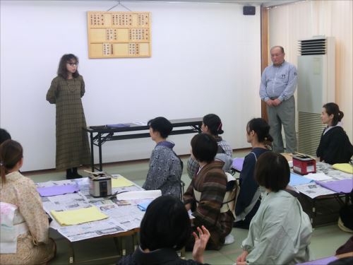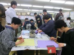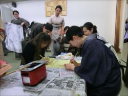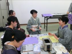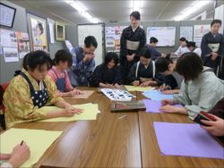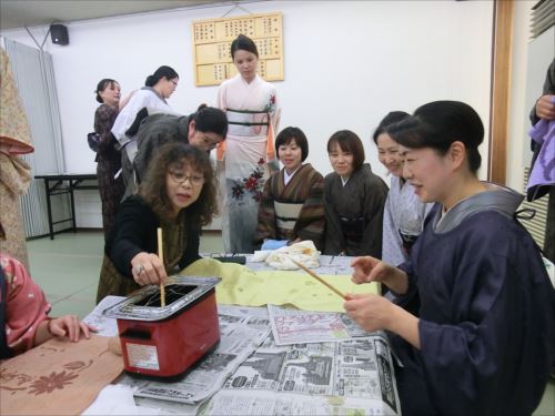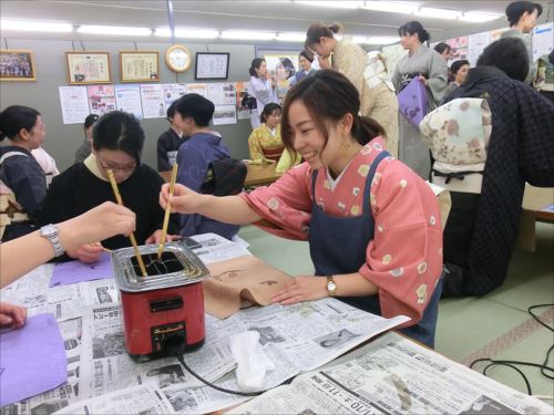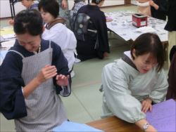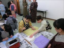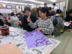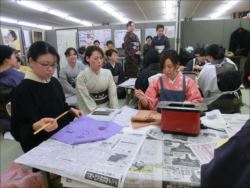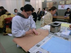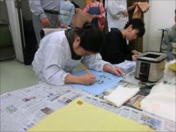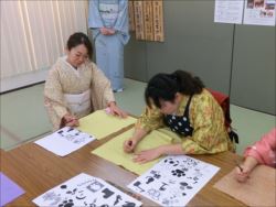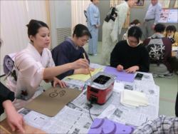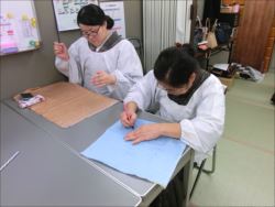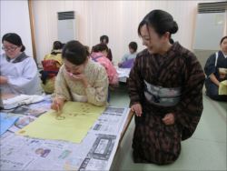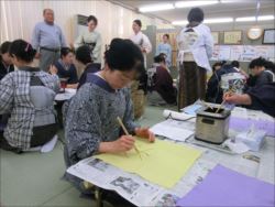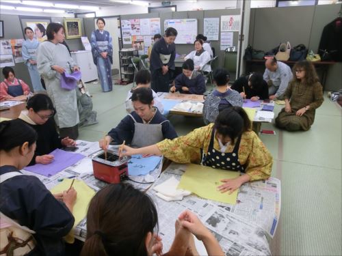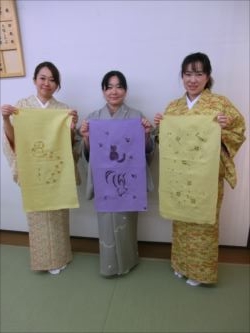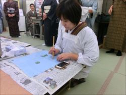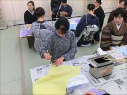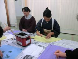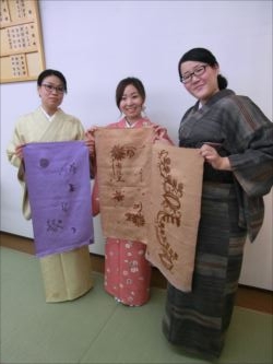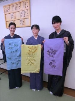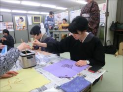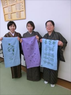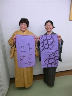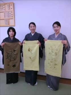 ろうけつ染め体験教室 2020 11.01 11月01日(金)京都の染織工芸作家「奥村右子」先生を講師にお迎えして、ろうけつ染め体験を催しました。 奥村右子先生と一緒に ろうけつ染めの染織工芸作家 奥村 右子先生 体験教室の様子 作 品 体験後のティータイム 参加された生徒さんの感想はこちら