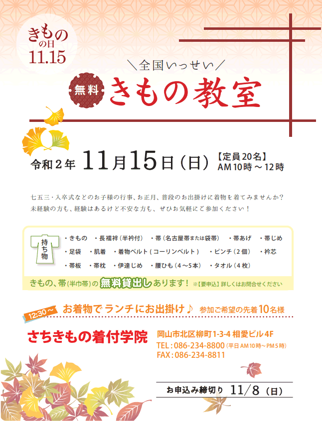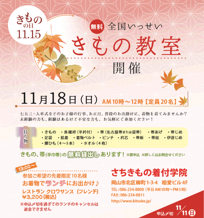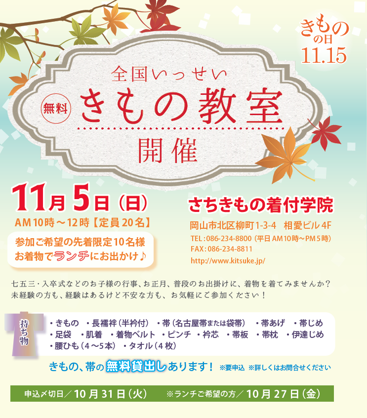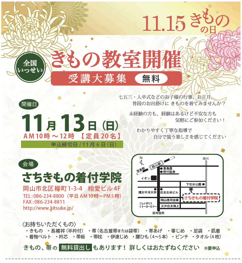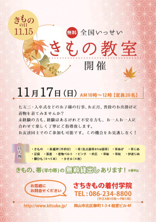 さちきもの着付学院 岡山市北区柳町1-3-4 相愛ビル4階