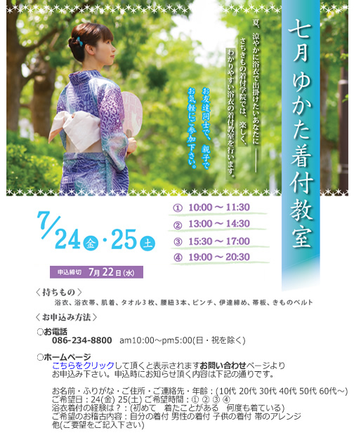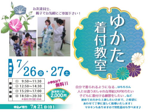 7月の催し 「るりの会」半巾帯講習会のお知らせ