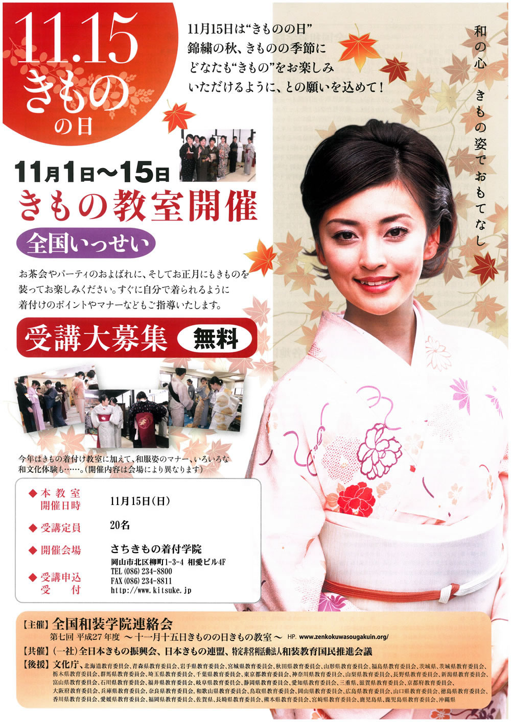 下記日程で、第15回「きもの文化検定 秋日程試験」が実施されます。